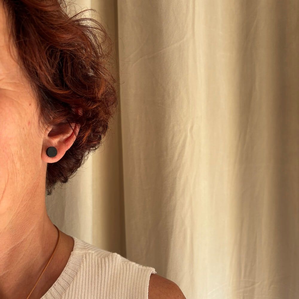 Disque plat en frêne teinté noir. Simples et discrètes, elles vont avec tout.