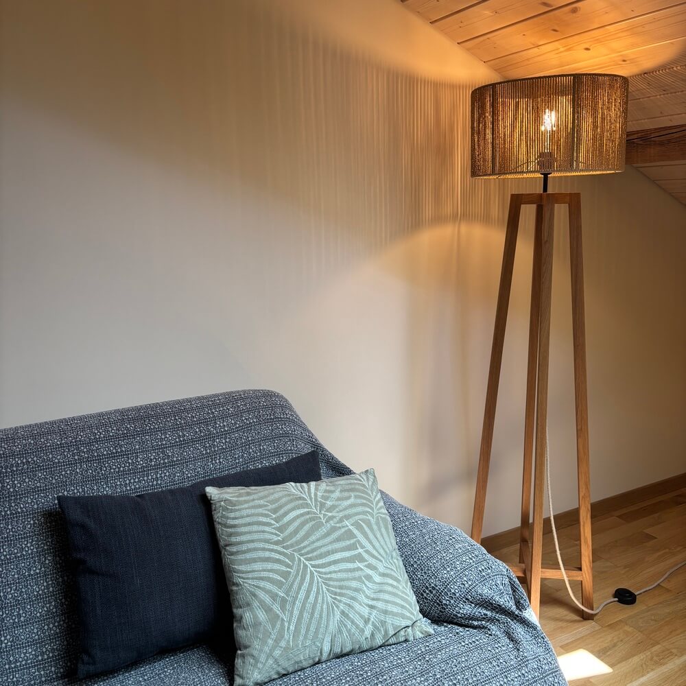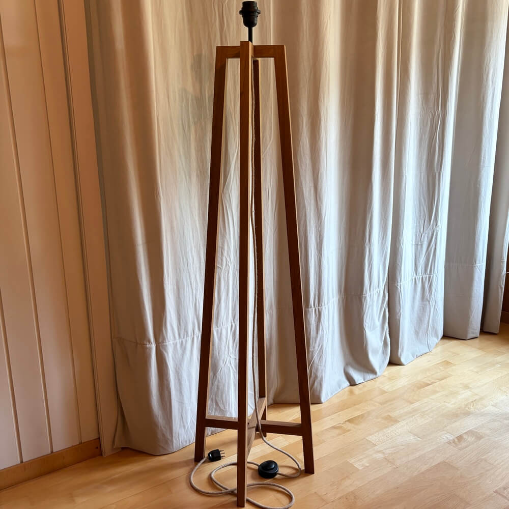Lampadaire en chêne huilé, vendu sans abat-jour pour laisser le choix du style. Convient parfaitement comme lampe d’ambiance dans un séjour.